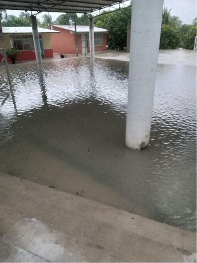 En Ciudad Valles, el cierre de la preparatoria Juan Moreno Cortés y la primaria Club de Leones No. 1 fue provocado por desbordamientos y accesos bloqueados.