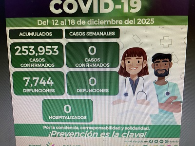 El Comité Estatal para la Seguridad en Salud y los Servicios de Salud del Gobierno del Estado, piden a la población potosina a no bajar la guardia ante la ausencia de casos de COVID-19 en esta última semana; es fundamental recordar que los frentes fríos terminarán hasta marzo del 2026, por lo que se pide a las familias a continuar abrigándose, cuidándose y a proteger a adultos mayores, niñas y niños pequeños y personas con enfermedades crónicas.