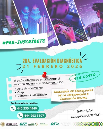 La Universidad Tecnológica Metropolitana de San Luis Potosí (UTMSLP) anunció la apertura de una cuarta carrera enfocada en la innovación y el desarrollo tecnológico: TSU en Entornos Virtuales y Negocios Digitales, con continuidad a la Ingeniería en Tecnologías de la Información e Innovación Digital, que comenzará en septiembre de 2026.