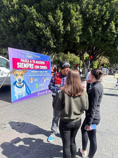 Las cadetes en formación “Centinelas” asi como personal de Justicia Municipal explicaron a las y los ciudadanos la importancia de pasear a los animales de compañía con correa, indicando que es una disposición establecida en el Bando de Policía y Gobierno.