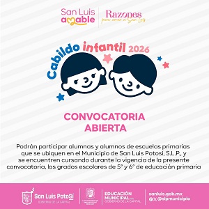 Para concluir, se recordó a quienes desean participar en el Cabildo Infantil que la convocatoria completa se puede consultar en la siguiente página: https://sitio.sanluis.gob.mx/SanLuisPotoSi/, en Gacetas Municipales en el apartado 2026 – Marzo.