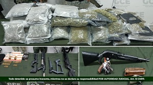 Se asestó un golpe al crimen, al asegurarse 20.56 kilogramos de marihuana, un rifle, una pistola, mil 680 cartuchos útiles y tres armas de utilería. Como resultado de las acciones coordinadas en materia de seguridad y como parte del operativo Base de Operaciones Mixtas Interinstitucional (BOMI), elementos de la Guardia Civil Estatal (GCE), de la Secretaría de la Defensa Nacional (Sedena) y de la Guardia Nacional (GN) aseguraron 74 bolsas de marihuana con un peso de 20.56 kilogramos, además de armas de fuego y cartuchos útiles en la localidad de El Charquillo, en la capital potosina.